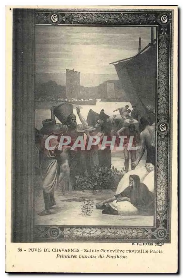 Cartes postales Puvis de Chavannes Sainte Genevieve ravitaille Paris Peintures murales du Pantheon