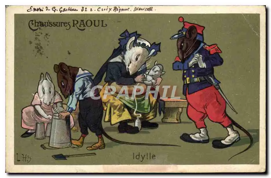 Cartes postales Rats Souris Chaussures Raoul Idylle Militaria