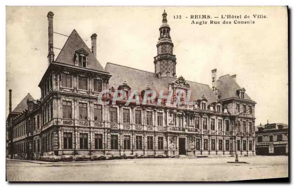 Cartes postales Reims L&#39Hotel De Ville Angle Rue Des Consuls
