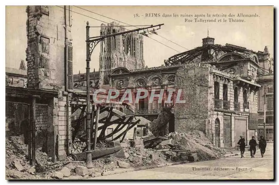 Cartes postales Reims Rue Talleyrand et le theatre Militaria