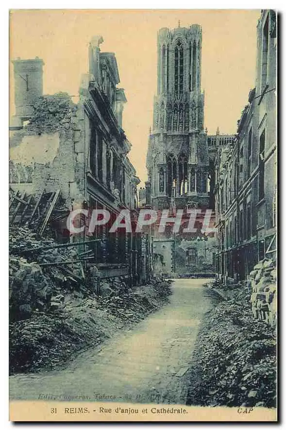 Cartes postales Reims Rue d'anjou et Cathedrale