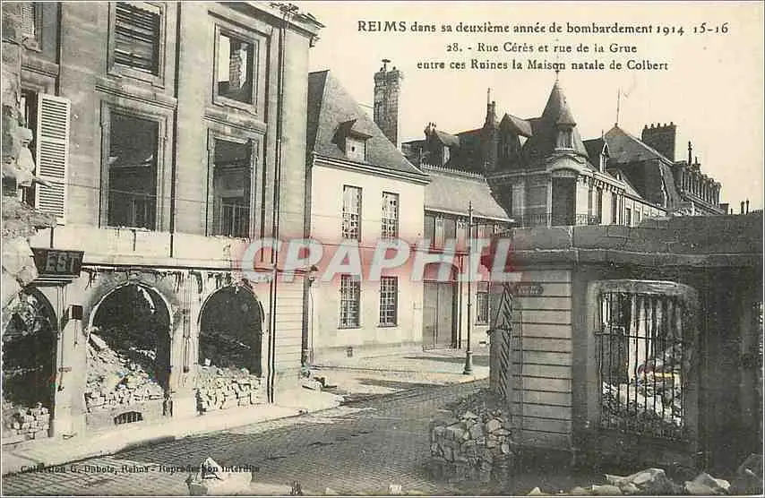 Cartes postales Reims dans sa Deuxieme annee de Bombardement 1914 1916 Rue Ceres et rue de la Grue entre ces Rui