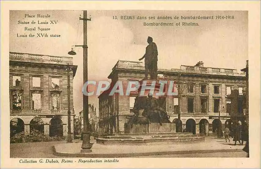Cartes postales Reims dans ses annees de Bombardement 1914 1918 Place Royale Statue de Louis XV Militaria