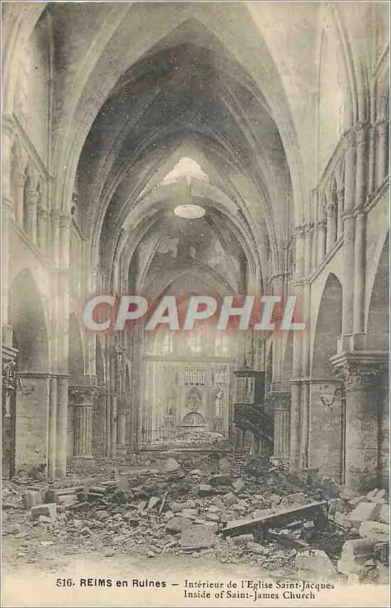 Cartes postales Reims en Ruines Interieur de l'Eglise Saint Jacques Militaria