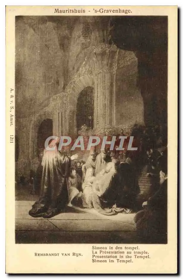 Cartes postales Rembrandt Van Rijn Mauritshuis Gravenhage La presentation au temple