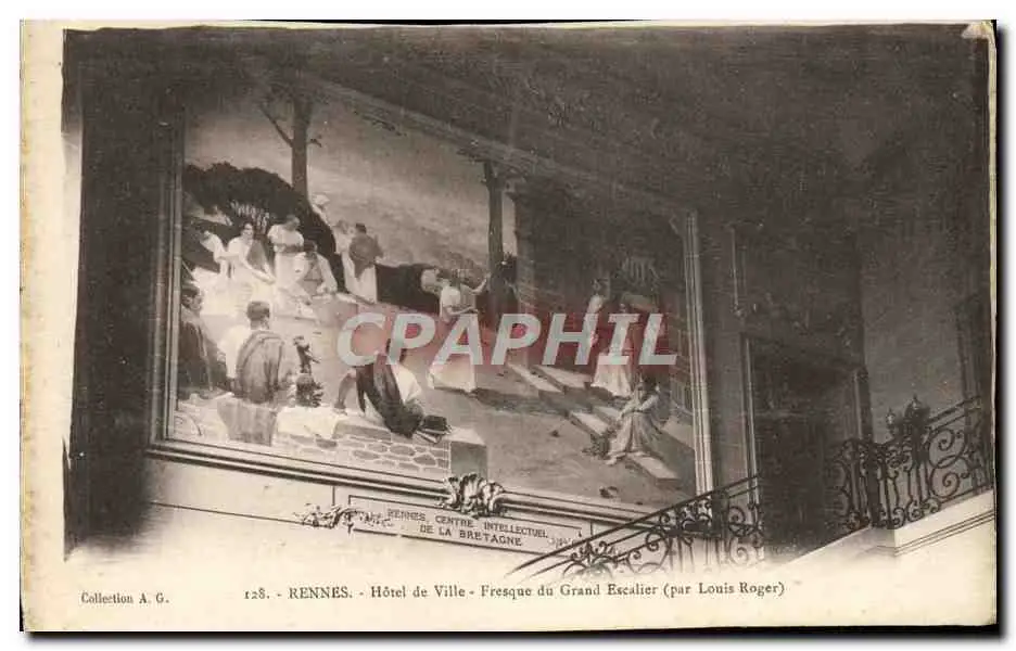 Cartes postales Rennes Hotel de ville Fresque du grand escalier Louis Roger