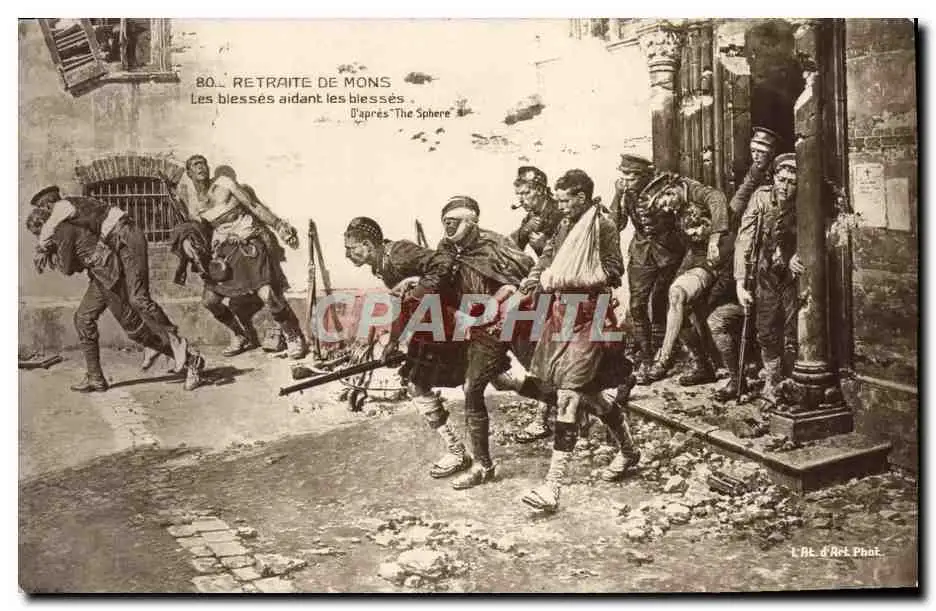 Cartes postales Retraite De Mons Les Blesses Aidant Les Blesses Militaria