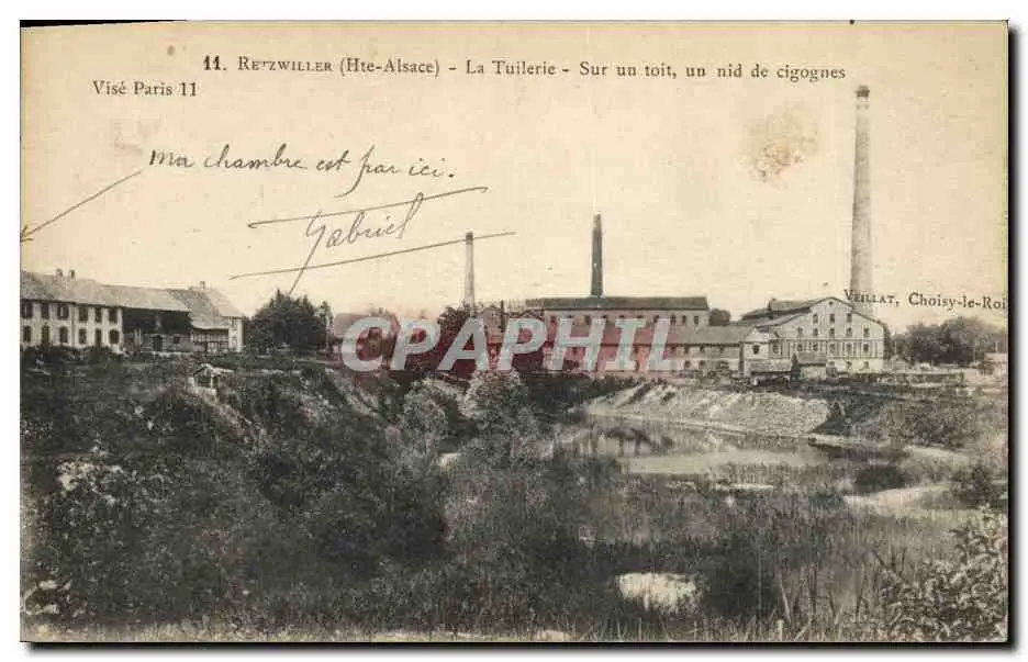Cartes postales Retzwiller La tuilerie Sur un toit un nid de cigognes