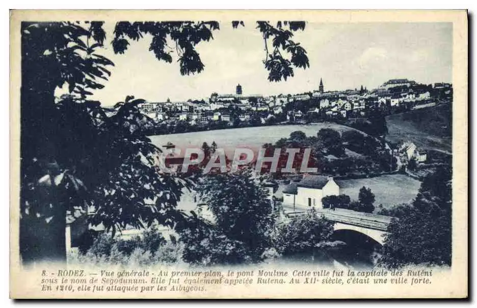 Cartes postales Rodez Vue generale Au premier plan le pont Mouline