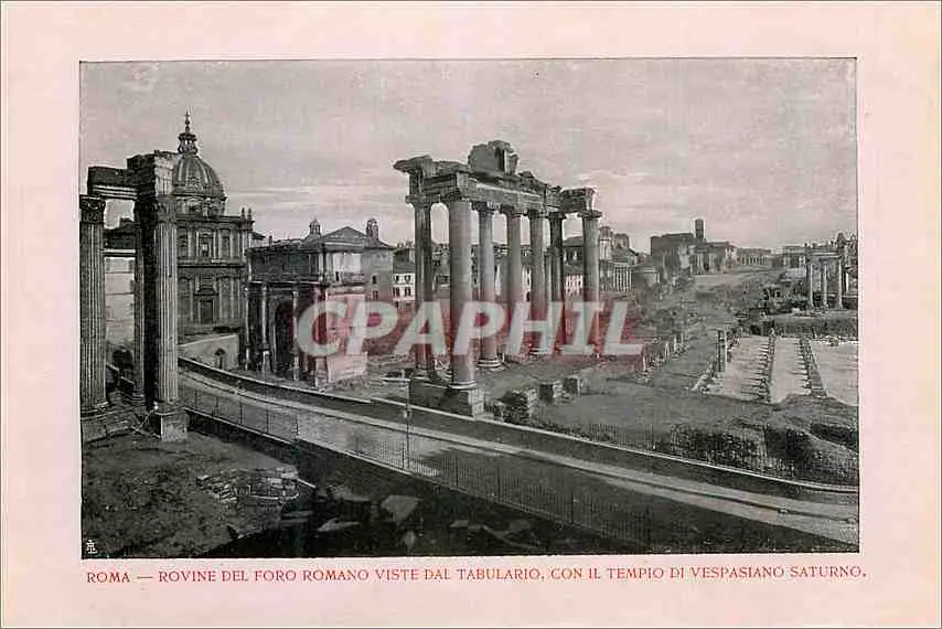 Cartes postales Roma Rovine del Foro Romano Visite dal Tabulario con il Tempio di Vespasiano Saturno