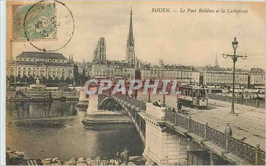 Cartes postales Rouen Le Pont Boildieu et la Cathedrale Tramway