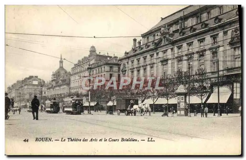 Cartes postales Rouen Le Theatre des Arts et le cours Boieldieu Tramway Chevaux