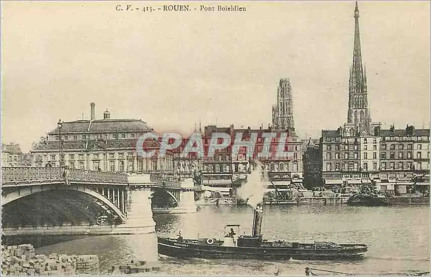 Cartes postales Rouen Pont Boieldieu Bateau