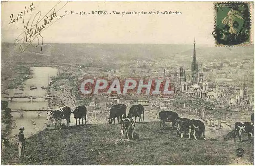 Cartes postales Rouen vue generale prise cote Ste Catherine Vaches