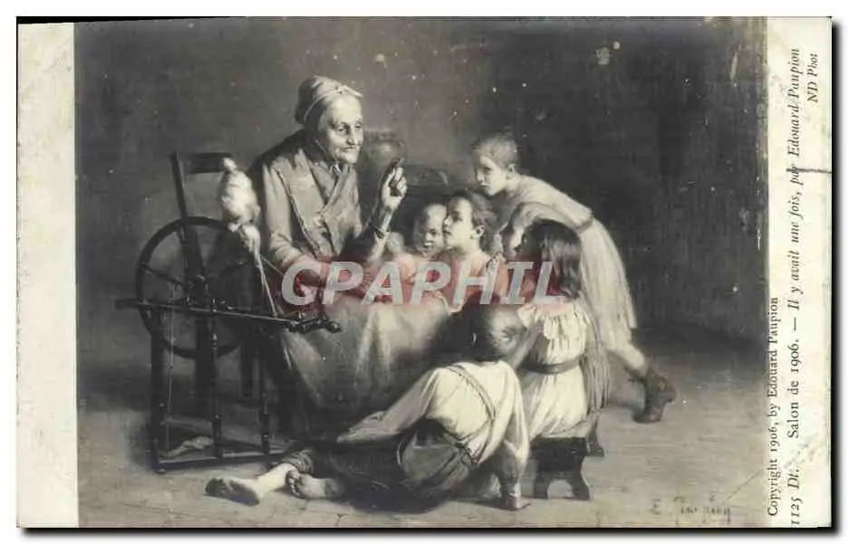 Cartes postales Salon de 1906 Il ya avait une fois Edouard Paupion Enfants Grand mere