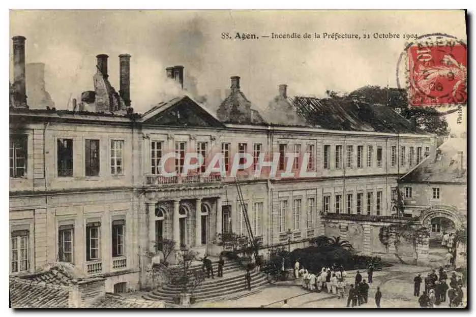 Cartes postales Sapeurs Pompiers Agen Incendie de la Prefecture 21 octobre 1904