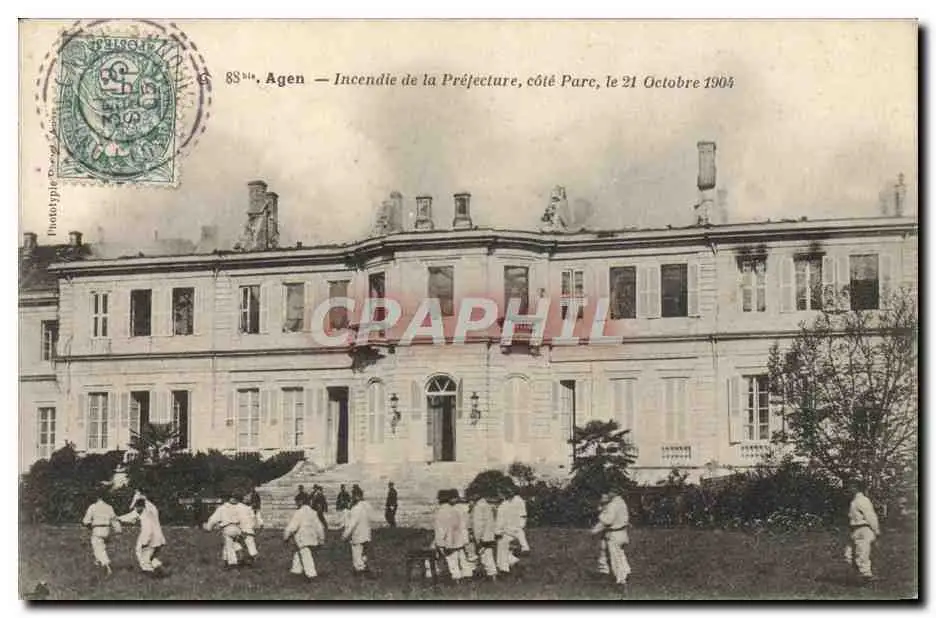 Cartes postales Sapeurs Pompiers Agen Incendie de la prefecture cote parc 21 octobre 1904