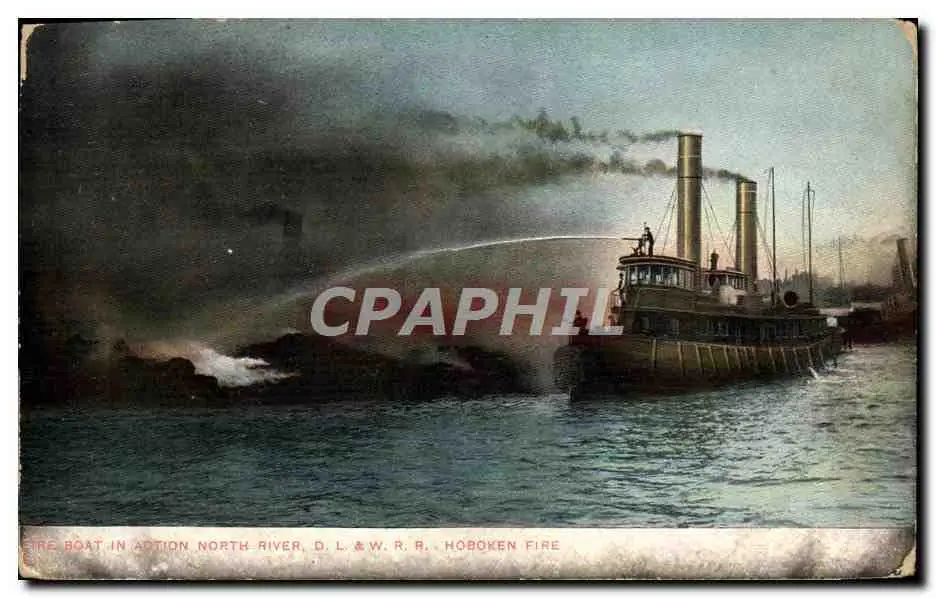 Cartes postales Sapeurs Pompiers Boat in action North River