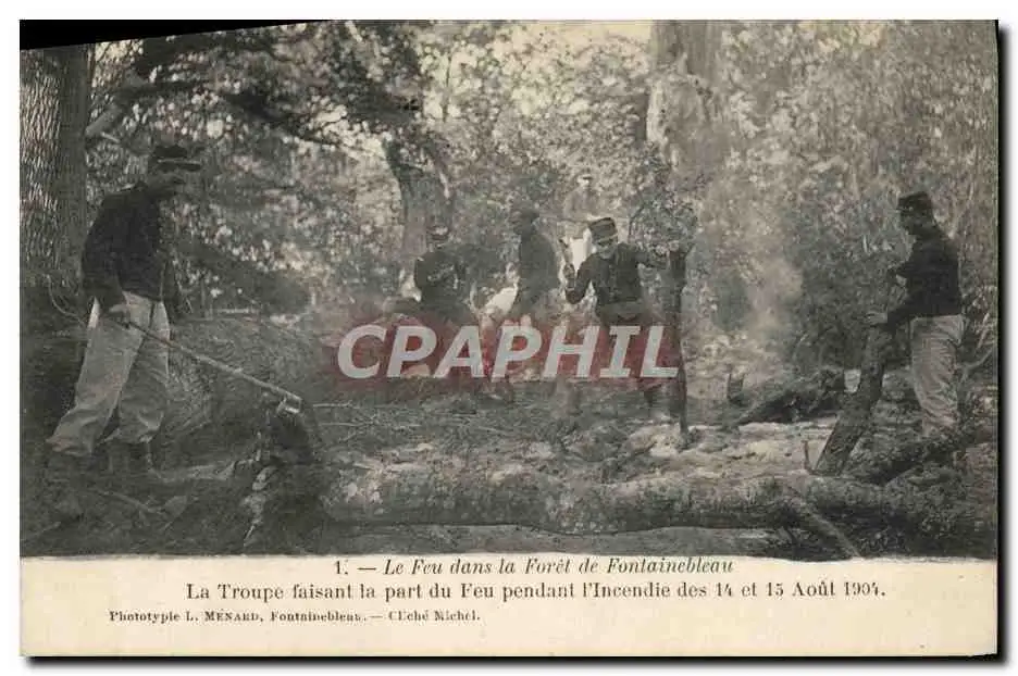Cartes postales Sapeurs Pompiers Le feu dans la foret de Fontainebleau La troupe faisant la part du fen pendant