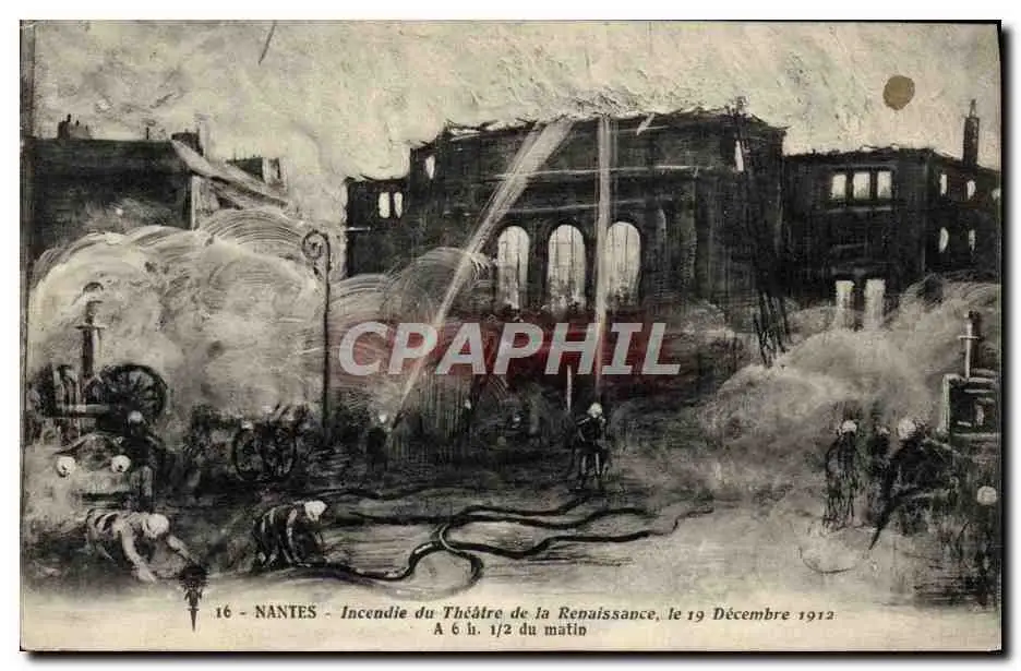 Cartes postales Sapeurs Pompiers Nantes Incendie du Theatre de la Renaissance 19 decembre 1912 a 6 1/2 du matin