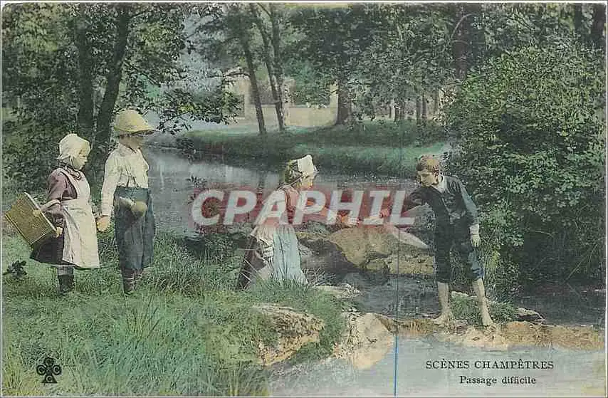 Cartes postales Scenes Champetres Passage difficile Enfants Folklore
