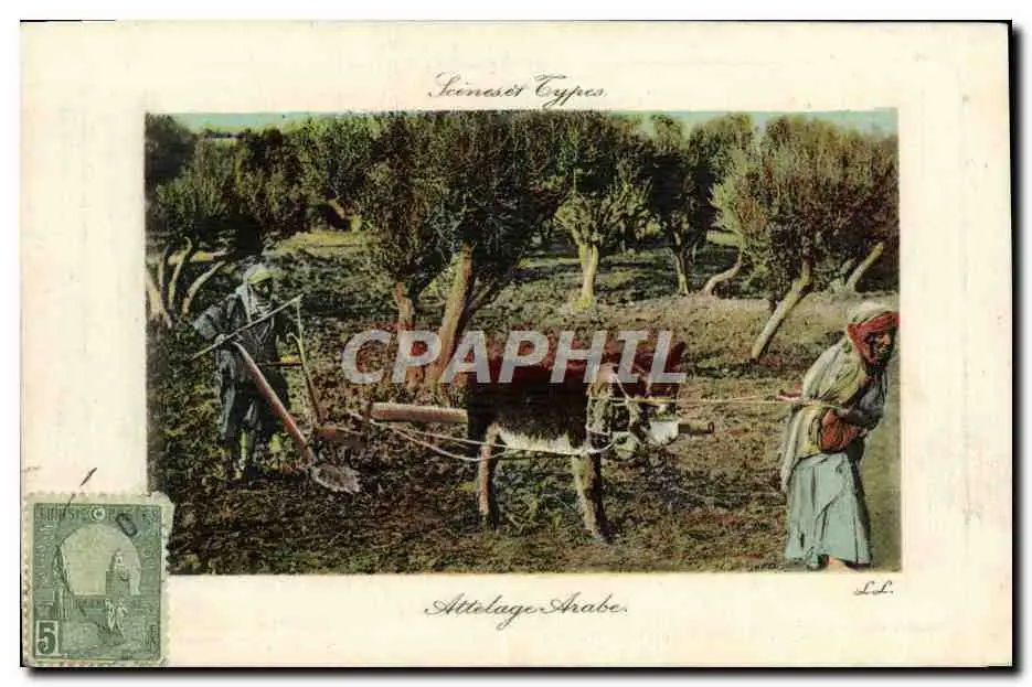 Cartes postales Scenes et Types Attelage Arabe Ane Mule