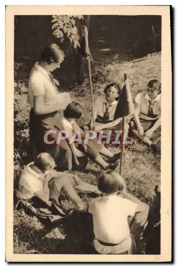 Cartes postales Scout Scoutisme Jamboree Chez les eclaireses La cheftaine parle