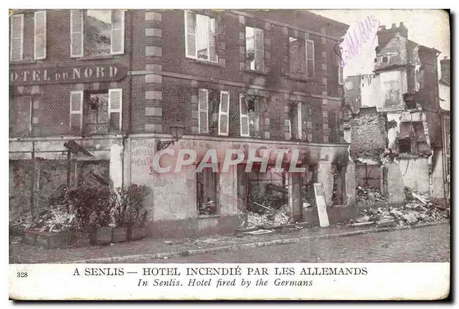 Cartes postales Senlis Hotel Incendie Par Les Allemands Militaria