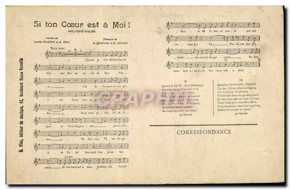Cartes postales Si ton coeur est a moi ! Lucien Colonge Baudard Devaux