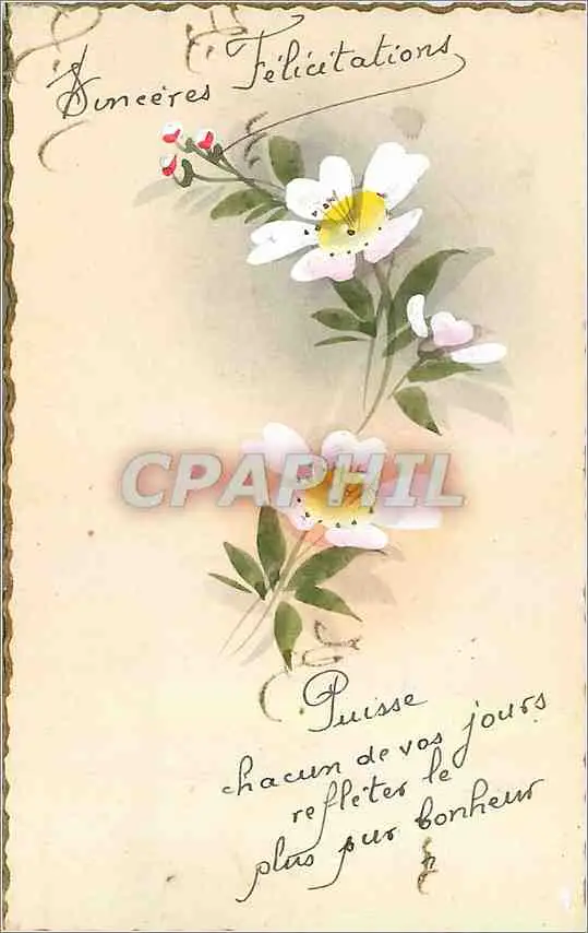 Cartes postales Sinceres Felicitations (dessin a la main)