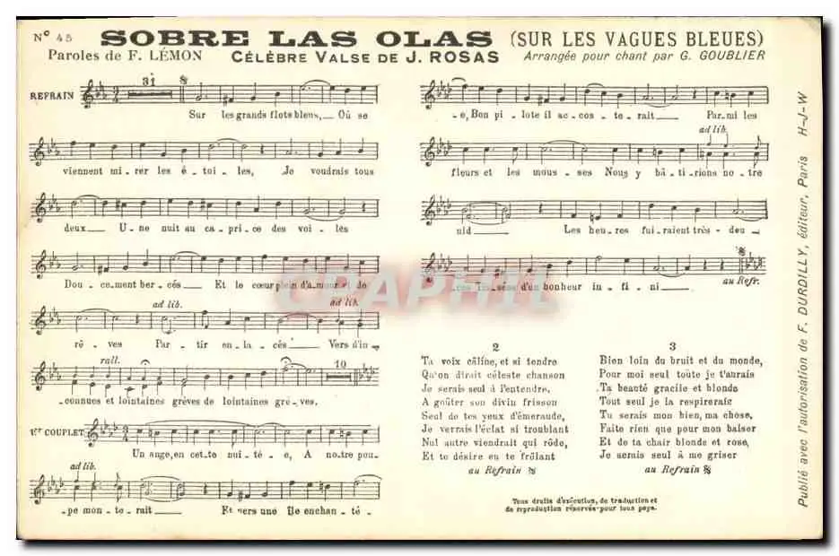 Cartes postales Sobre Las olas Sur les Vagues Bleues Lemon Rosas Goublier