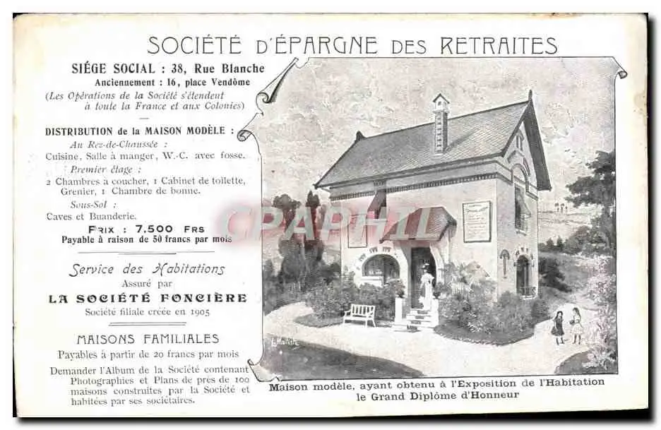 Cartes postales Societe d'Epargne des retraites Rue Blanche Maison modele