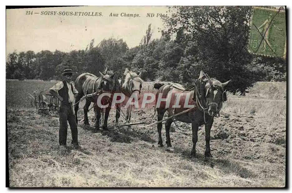 Cartes postales Soisy Sous Etiolles Aux Champs Attelage Chevaux Labour Laborage TOP
