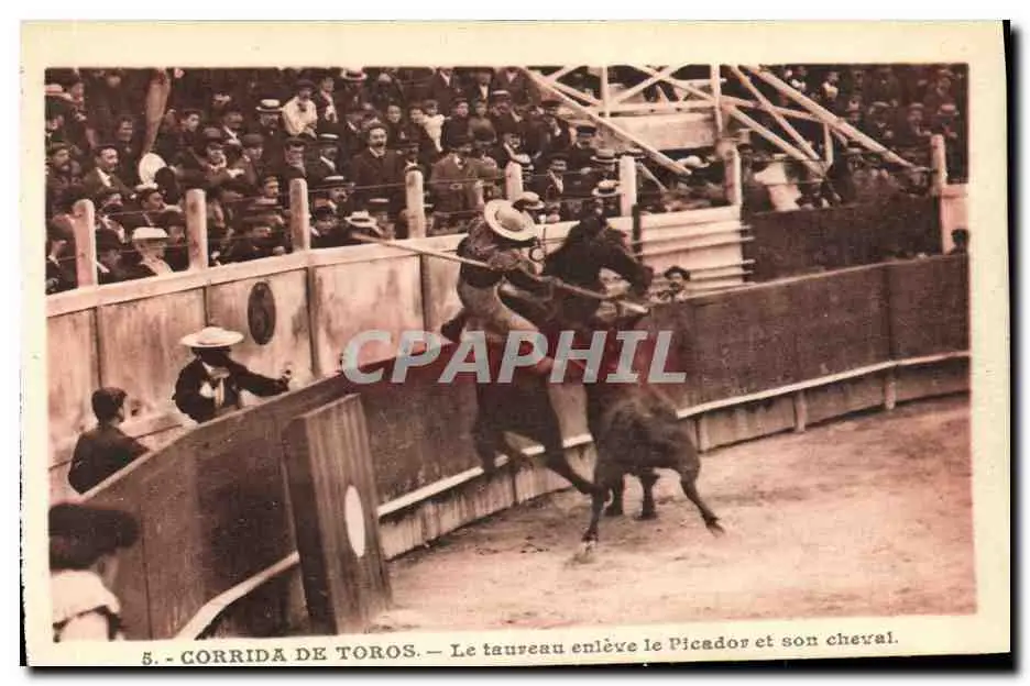 Cartes postales Sport Espagne Corrida Toro Taureau Le taureau enleve le Picador et son cheval