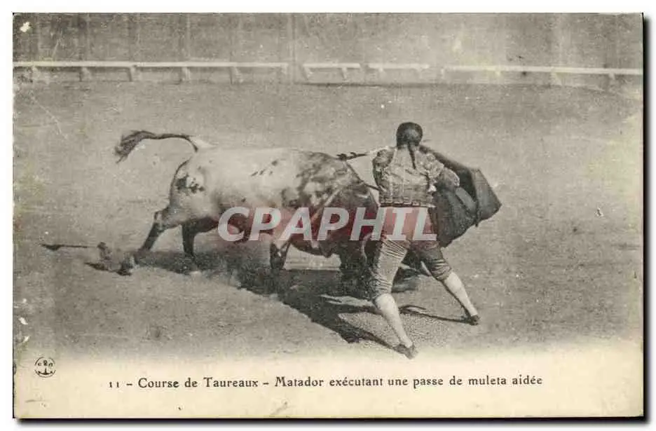 Cartes postales Sport Espagne Corrida Toro Taureau Matador executant une passe de muleta aidee