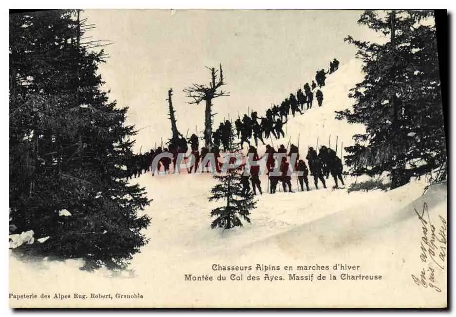 Cartes postales Sports d'hiver Ski Chasseurs alpins en marches d'hiver Montee du col des Ayes Massif de la