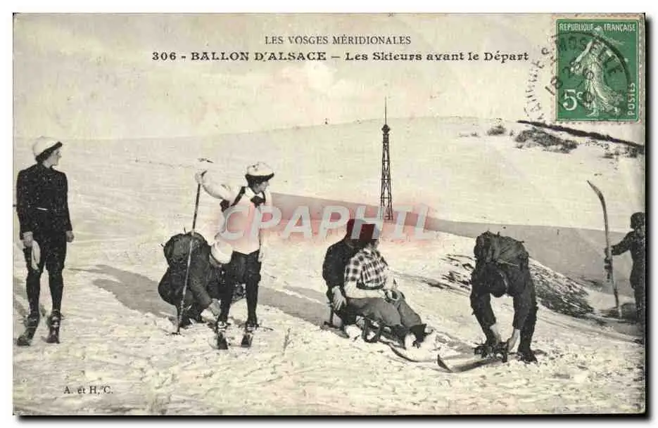 Cartes postales Sports d'hiver Ski Vosges Ballon d'Alsace les skieurs avant le depart