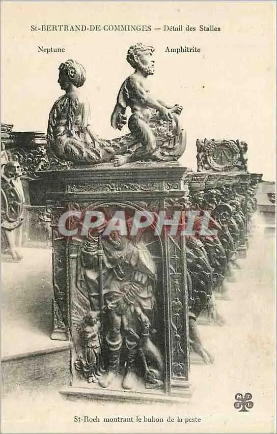 Cartes postales St Bertrand de Comminges Detail des Stalles St Roch montrant le bubon de la peste