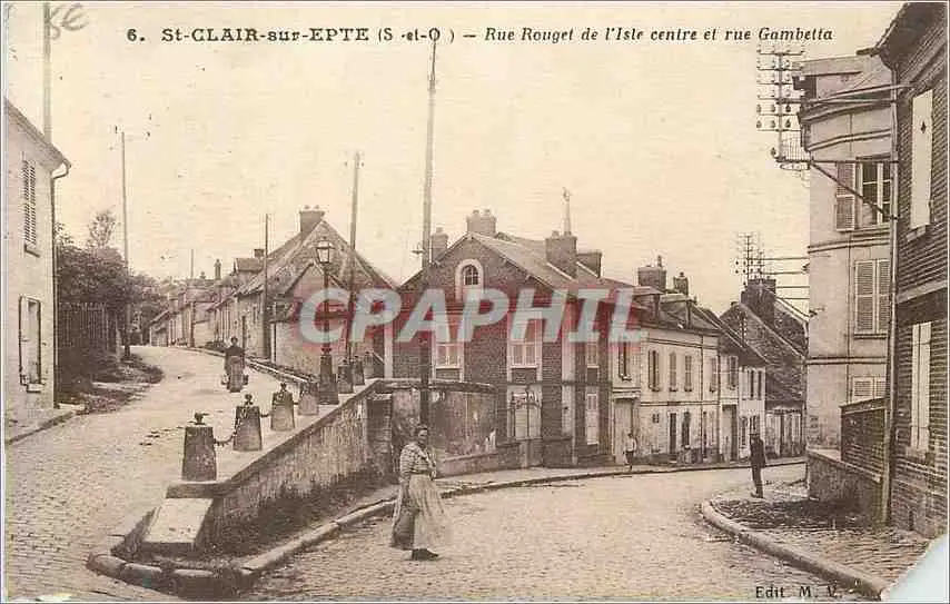 Cartes postales St Clair sur Epte S et O Rue Rouget de l Isle centre et rue Gambetta