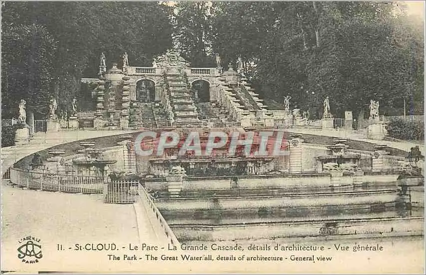 Cartes postales St Cloud Le Parc Le Grande Cascade details d architecture Vue generale