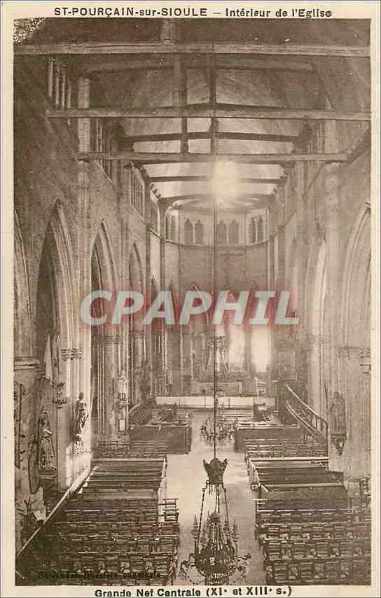 Cartes postales St Pourcain sur Sioule Interieur de l'Eglise Grande Nef Centrale (XIe et XIIIe S)