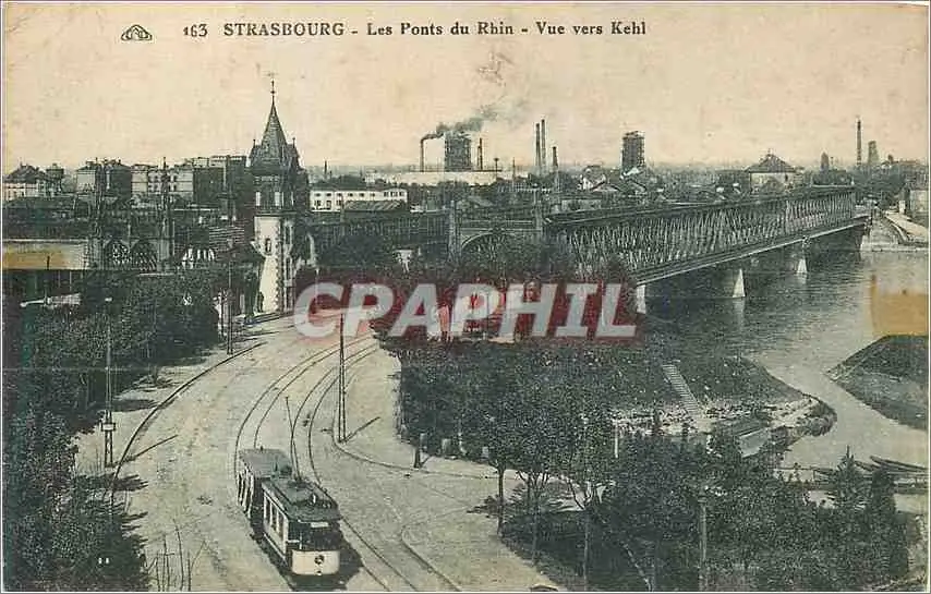 Cartes postales Strasbourg Les Ponts du Rhin Vue vers Kehl Tramway
