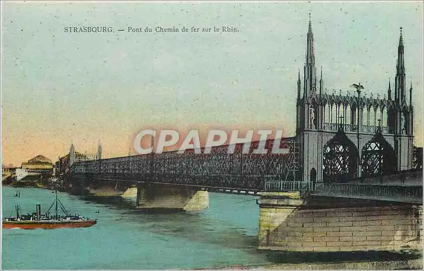 Cartes postales Strasbourg Pont du chemin de fer sur le Rhin Bateau