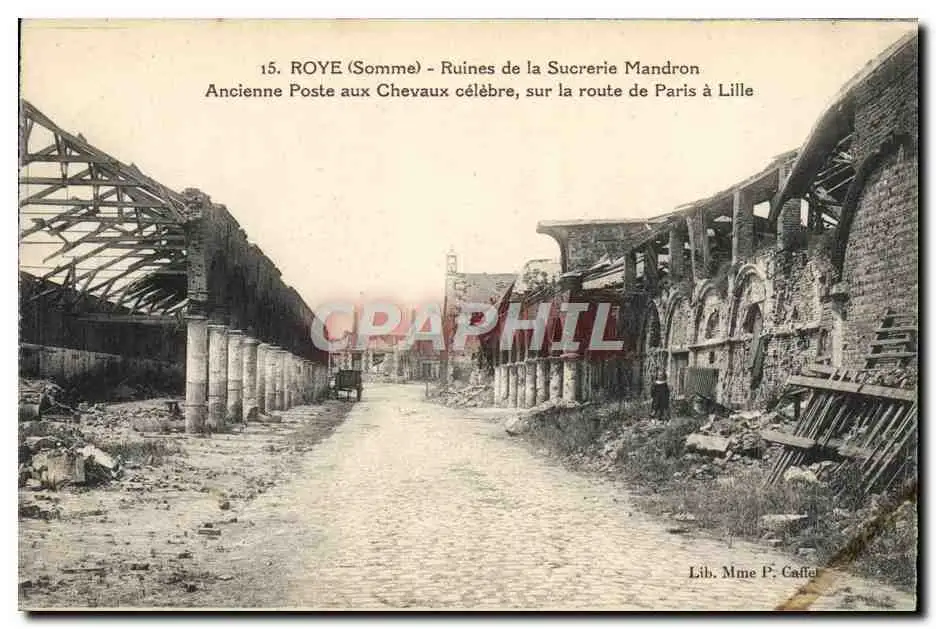 Cartes postales Sucrerie Roye Ruines de la sucrerie Mandron Ancienne poste aux chevaux celebre sur la route de P