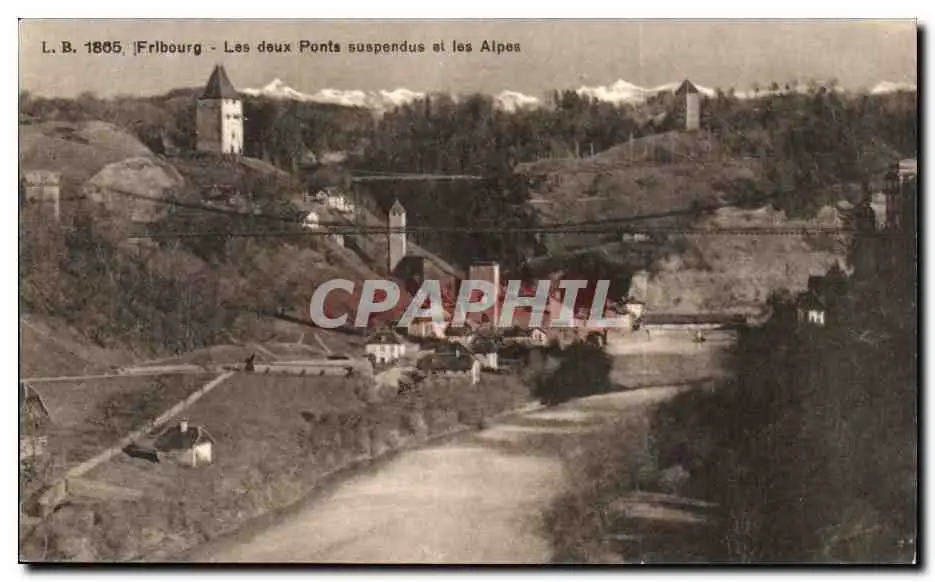 Cartes postales Suisse Fribourg Les deux ponts suspendus et les Alpes