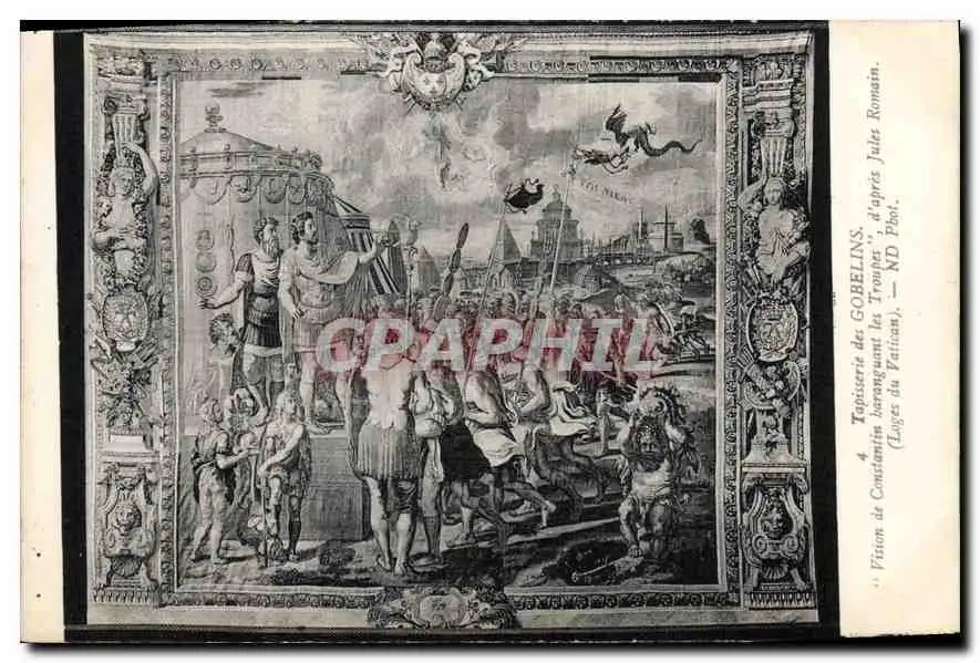 Cartes postales Tapisserie des Gobelins vision de Constantin baranguant les Troupes d'apres Jules Romain Loges d