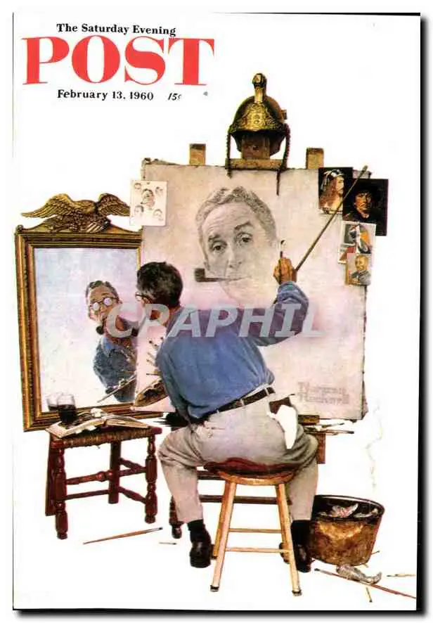 Cartes postales The Saturday Evening Post February 13 1960 Triple Self Portrait by Norman Rockwell