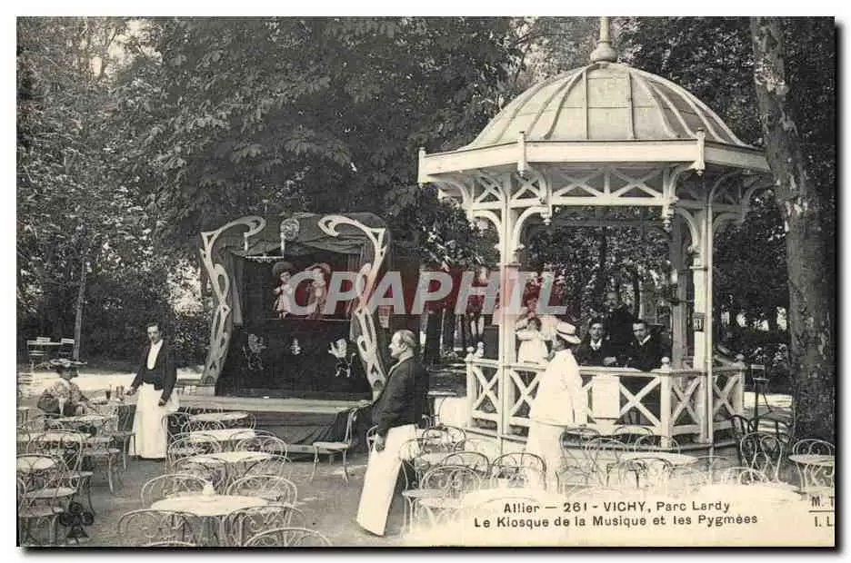 Cartes postales Theatre Guignol Vichy Parc Lardy Le kiosque de la musique et les Pygmees
