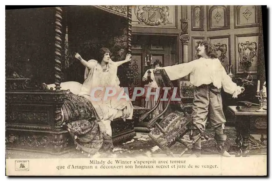 Cartes postales Theatre Milady de Winter s&#39apercoit avec terreur que d&#39Artagnan a decouvert son honteux se