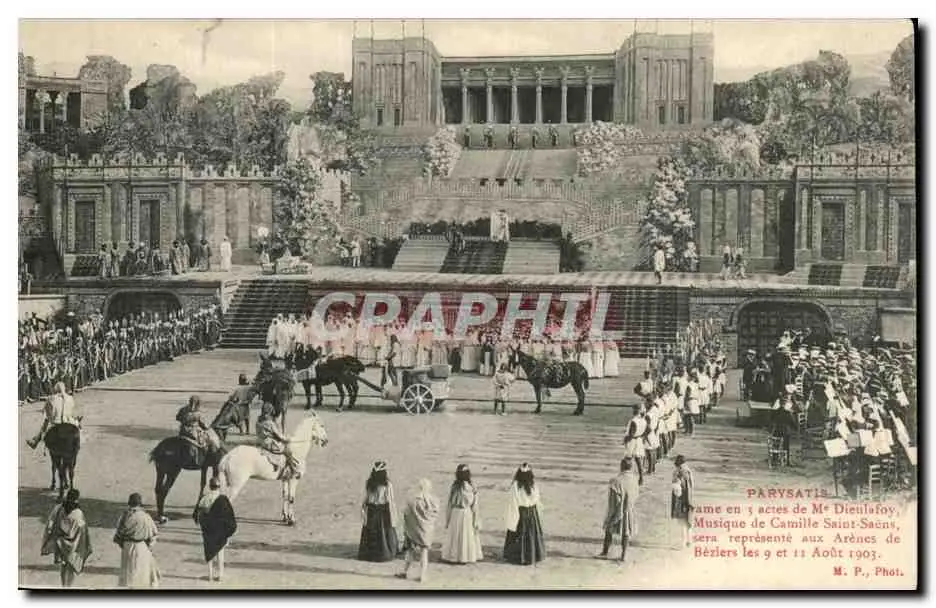 Cartes postales Theatre Parysatias Saint Saens aux arenes de Beziers les 9 et 11 aout 1903 TOP